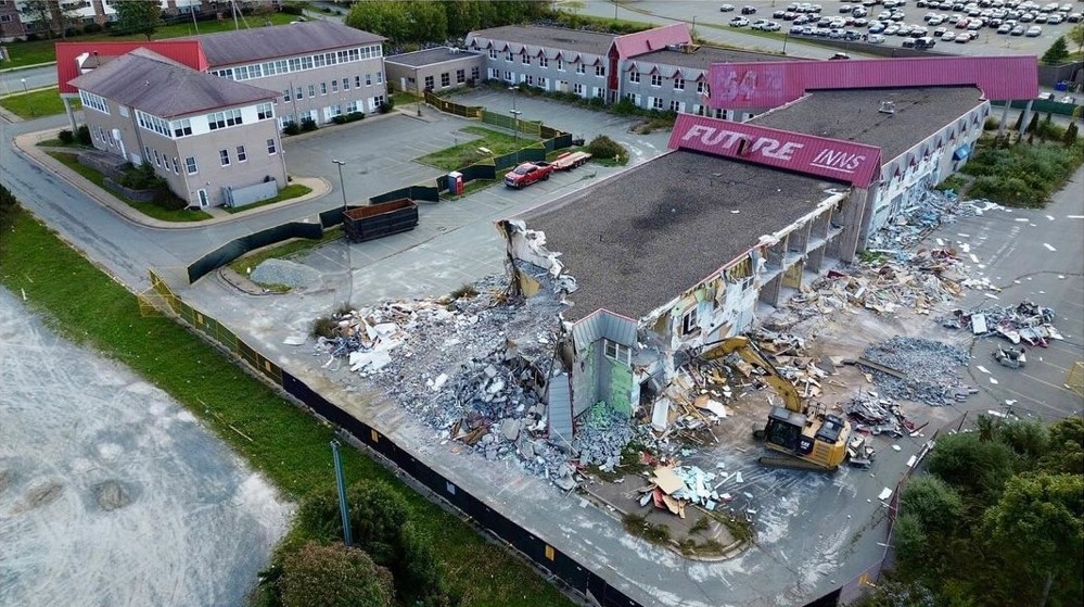 Starfish Demolition was responsible for the complete demolition of Highfield Future Inn, a former hotel that had over 100 rooms, along with a restaurant and swimming pool. This building, which served HRM for several years, presented unique challenges due to its large size and concrete construction. The majority of the structure was composed of concrete and concrete block, requiring specialized equipment and expertise to bring it down safely and efficiently.